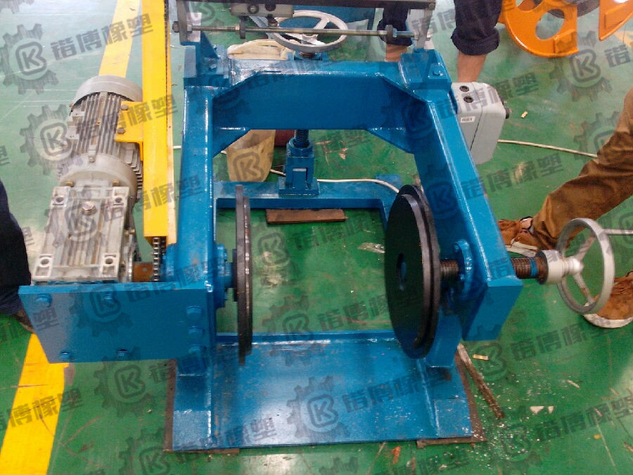 設(shè)備主要由:φ2500端軸式放線架、放帶盤、放帶架、存帶架、排帶架、倒帶機、KBKZ.3-125鎧裝主機、防護(hù)罩、TQD-1250kg履帶牽引機、φ2500端軸式收排線架、電氣控制柜、操作系統(tǒng)等部分組成。
